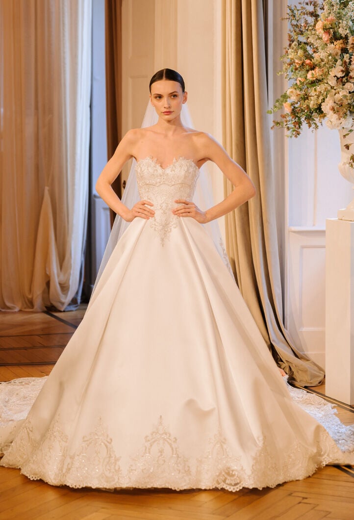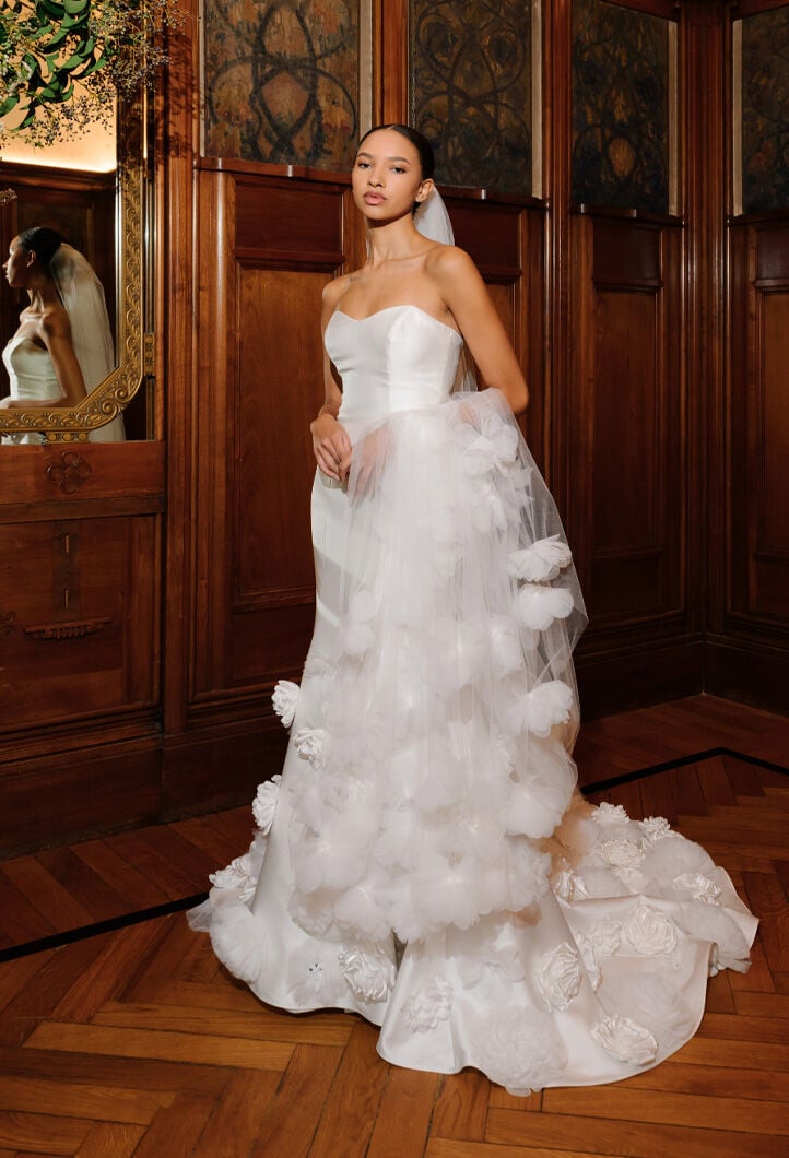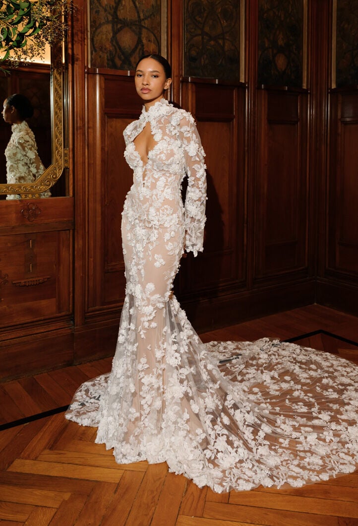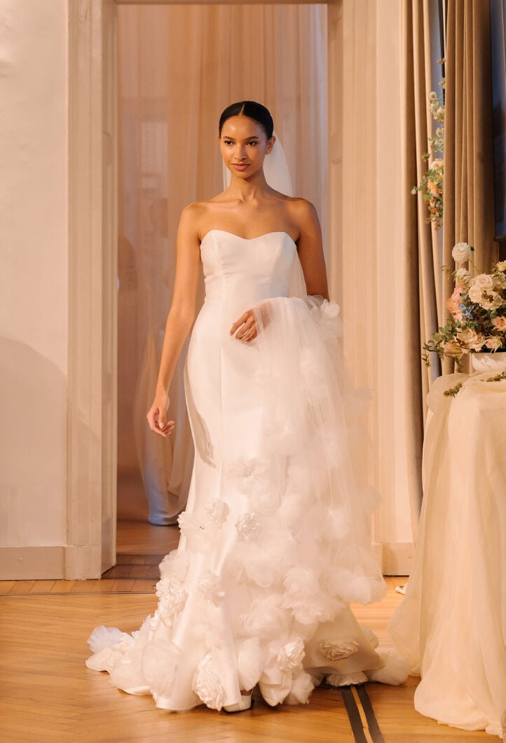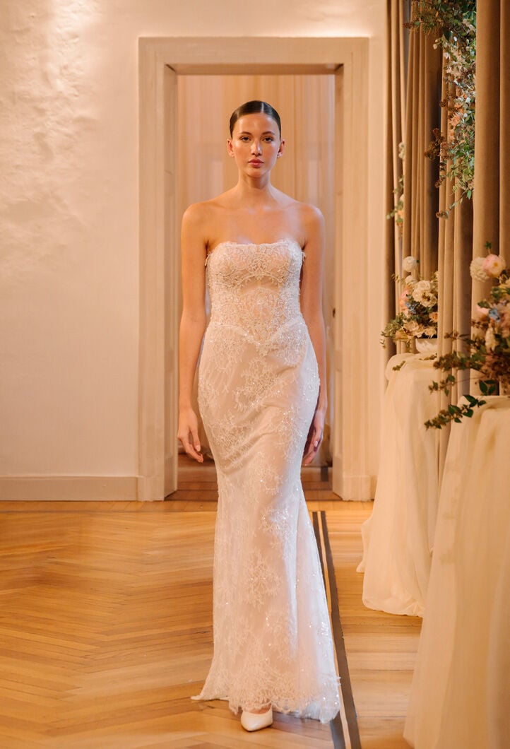 Abiti unici, realizzati a mano, reinterpretano la femminilità con romanticismo, eleganza e dettagli preziosi, tra sfumature di bianco, tocchi poetici di rosa cipria e un audace total black.